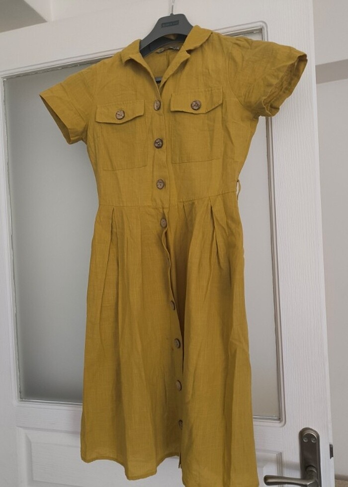 Sorunsuz keten elbise kemeri kayıp sadece cep detaylı #elbise #ketenelbise
