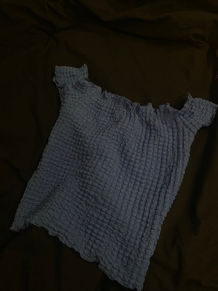 keten kumaştan, kayık yaka ve fırfır detaylı, bol kesim kolsuz bluz.
