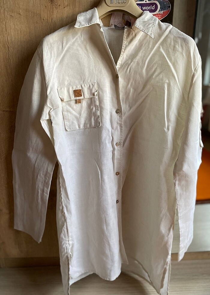 Keten gömlek sayılı kullanıldı bej renk