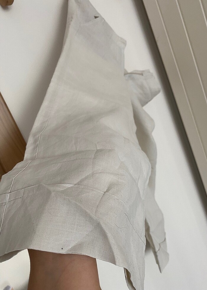 Ürün keten karışımlı kumaşa benzeyen iç astarı mevcuttur. Bedenime olmadığı için satıyorum. Bir tek düğmesi eksiktir. Onun haricinde hiç bir problemi yoktur. Tam yazlık çok hoş bir kumaşı var.