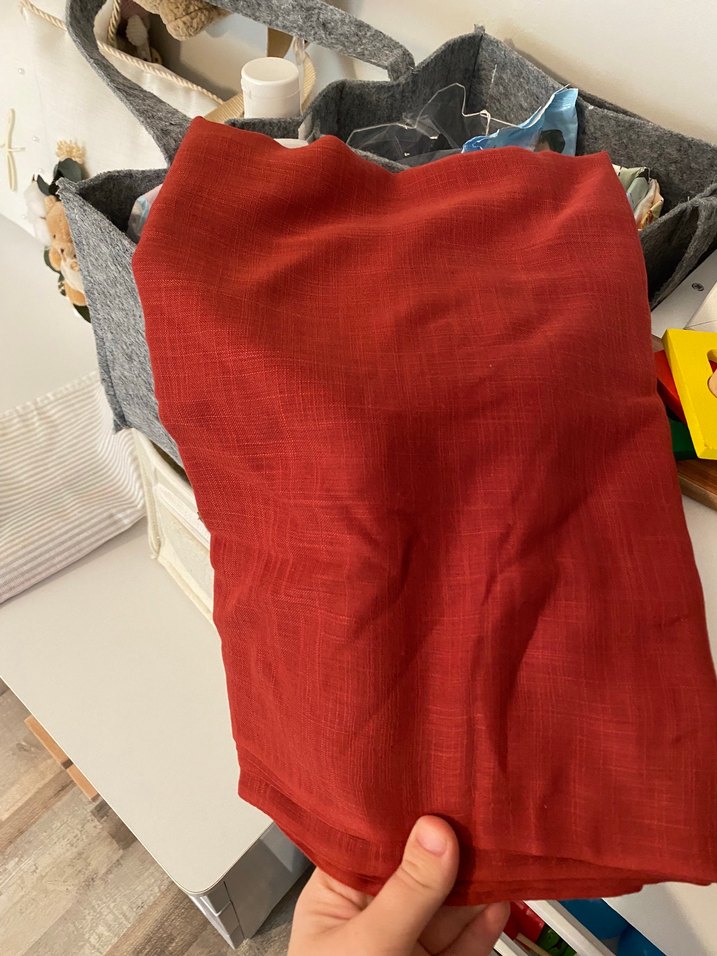 Keten kumaştan, kiremit renkte, drapeli kadın şalı. Rahat ve bohem tarzıyla sıcak tutar.