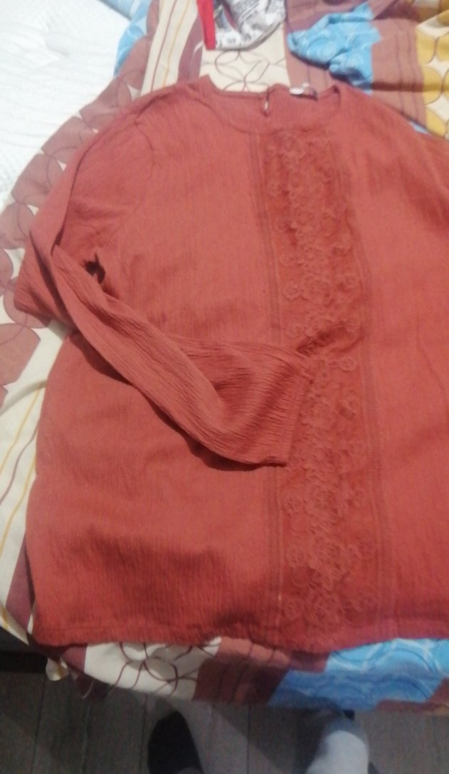 Keten kumaştan, uzun kollu ve yuvarlak yakalı kırmızı bohem tarzda, salaş kesim bluz. Günlük kullanıma uygun rahat model.