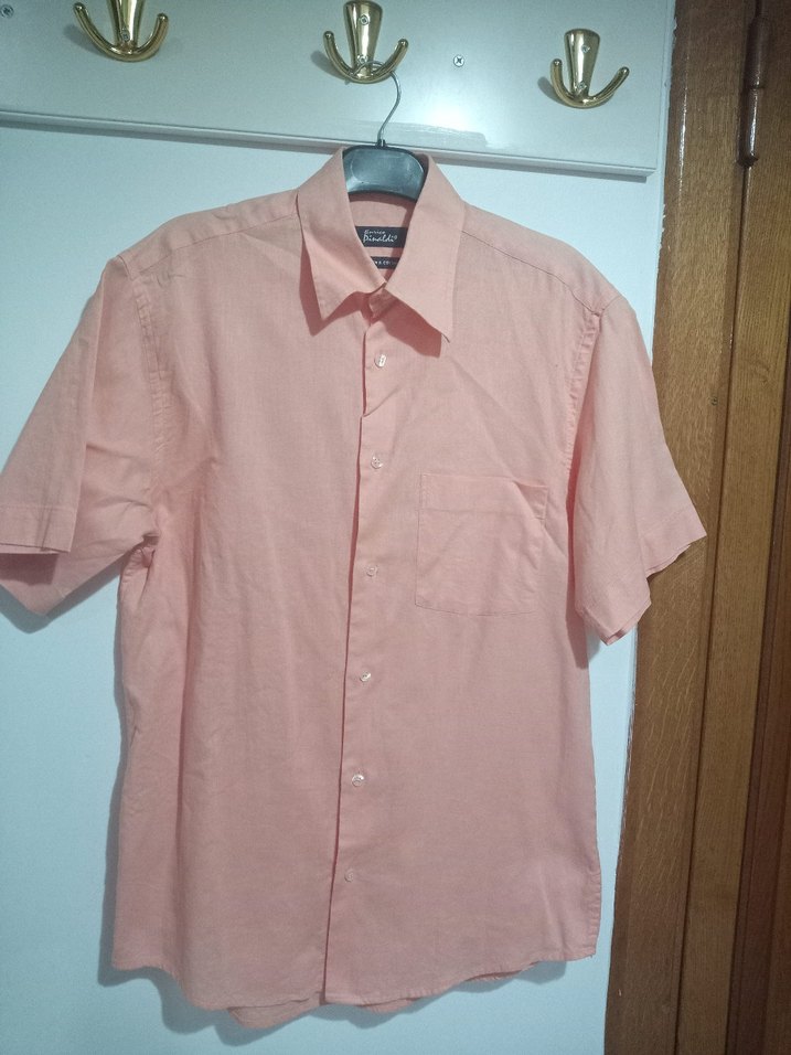 Pastel turuncu renkte, keten kumaştan yapılmış kısa kollu, erkek gömlek. Düğmeli ve yakalı, ofis ve günlük kullanım için uygun. çok güzel bir kumaşı vardır Terletmeyecek, rahat kesim güzel bir üründür. ölçü isteyebilirsiniz.Alana hayırlı uğurlu olsun ✨✨