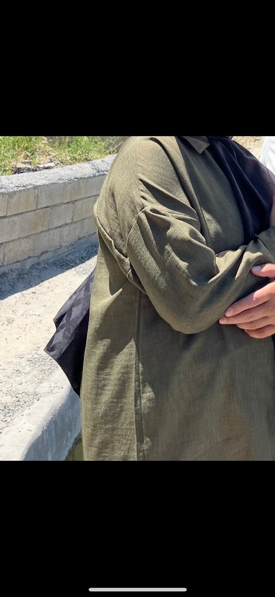 Keten kumaştan üretilmiş, salaş kesimli ve uzun boylu bu khaki hamile kabanı, yaka kısmında notalı yaka detayına sahiptir. Günlük kullanıma uygun, modest sokak stili için idealdir.