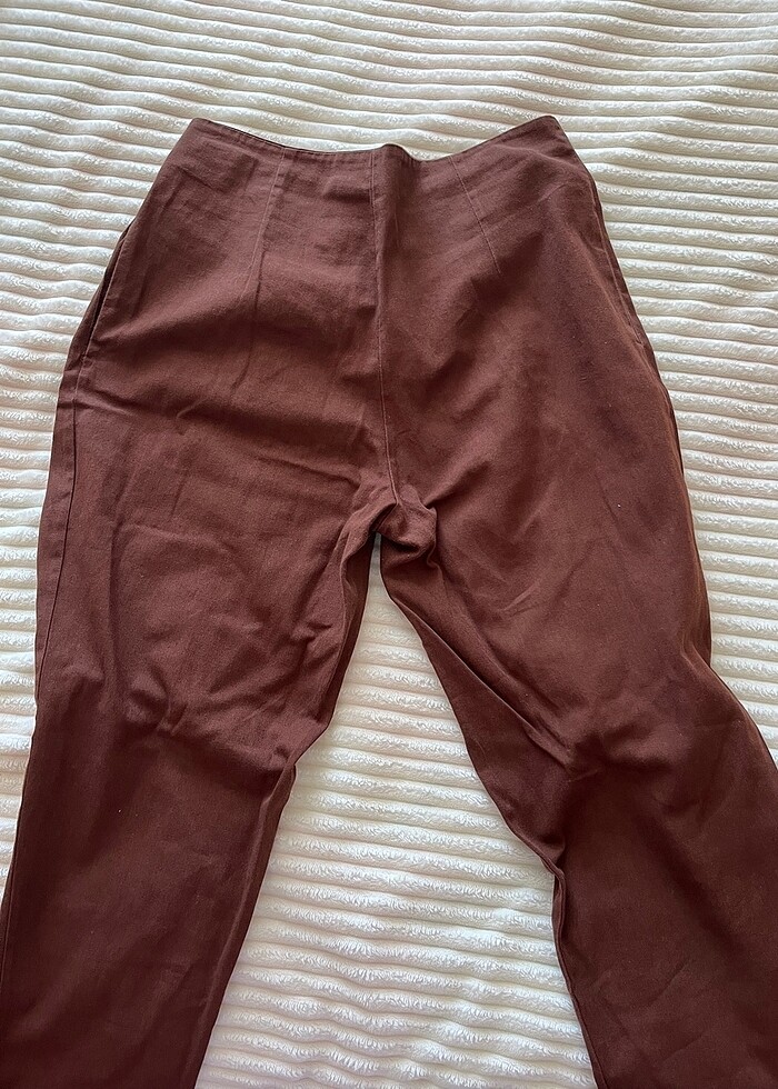 Trendyol keten pantolon. Binici tarzı bir pantolondur. Pamuk ağırlıklı bir kumaşı var.