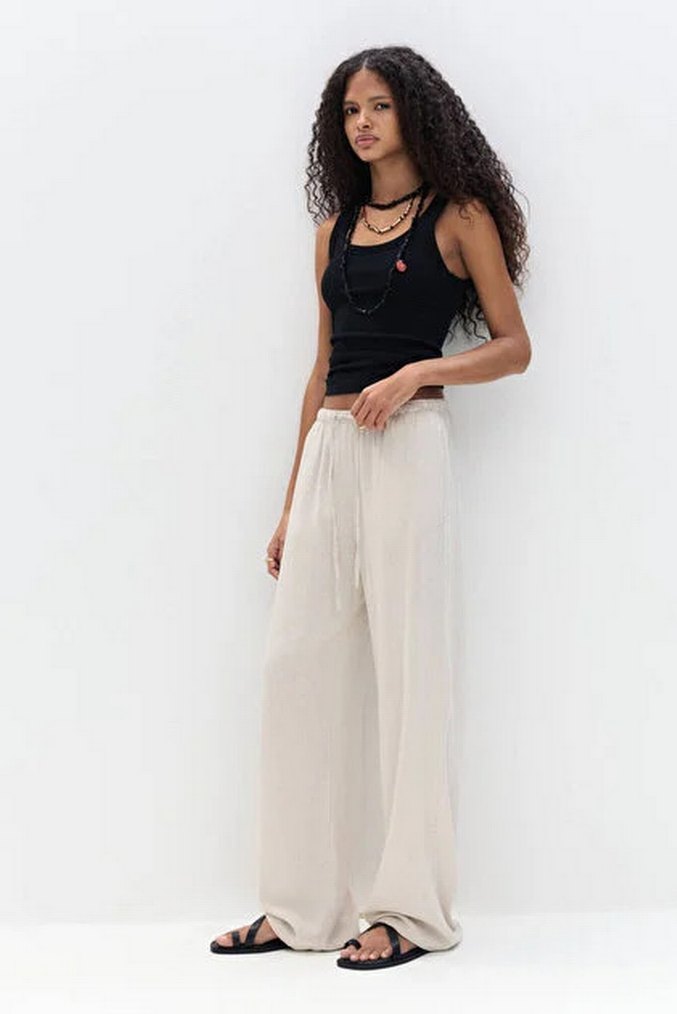 Midi boy, keten kumaştan yapılmış beyaz, salaş kesim kadın pantolon, günlük rahat ve minimal şıklık sunar. 1 saat giyindim boyumdan ötürü kısa geldi bu yüzden giyemedim hiç.