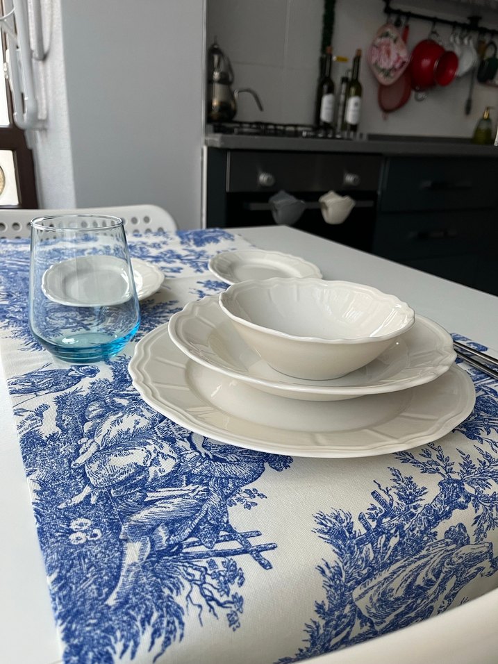 Fransız köylüleri desenli mavi renk Runner . Panama ketenidir. Kendi üretimimdir Ölçüsü : uzunluk:2 m , genişlik :40 cm