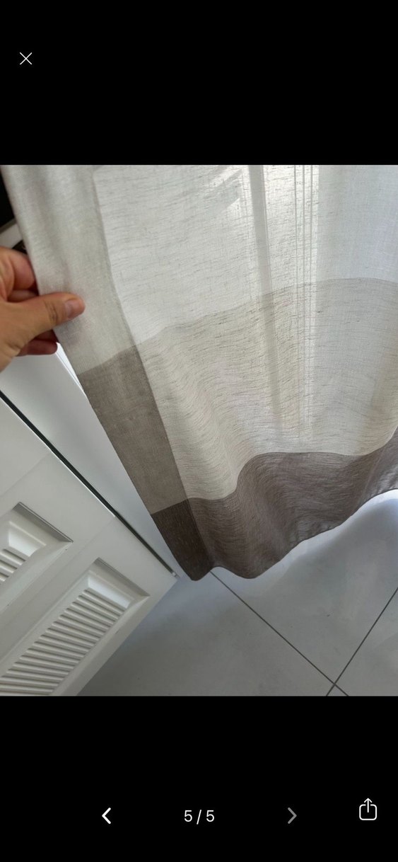 Bej ve gri renklerde, desen içermeyen ve modern tarzda bir perde. Odaya sade ve şık bir görünüm kazandırır. Herhangi bir sorunu yoktur.
