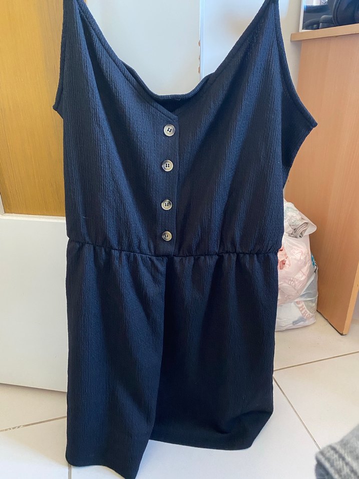Düğmeli, V yakalı, ketenimsi bi kumaşı var esnek Etiketini kesmişim ama hiç giymedim addax mağazadan almıştım 173 boyum , çok kısa olmuyodu belinde Xl ama l giyiyorsanız ve bol dursun isterseniz de olur Askıları ayarlanabilir.
