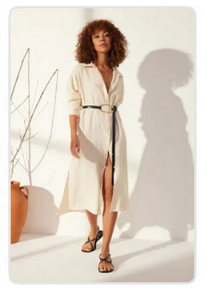 Krem keten uzun gömlek elbise, bol kesim, minimalist, günlük rahat sokak stiline uygundur. Plaj elbisesi olarak da kullanılabilir. 100% keten, iki üç defa kullanıldı sadece, hiç bir sorunu yoktur.