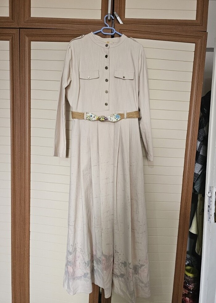 Keten pudra rengi elbise Taşı düşmüş fotoğrafını ekledim. Pazarlık yapılabilir