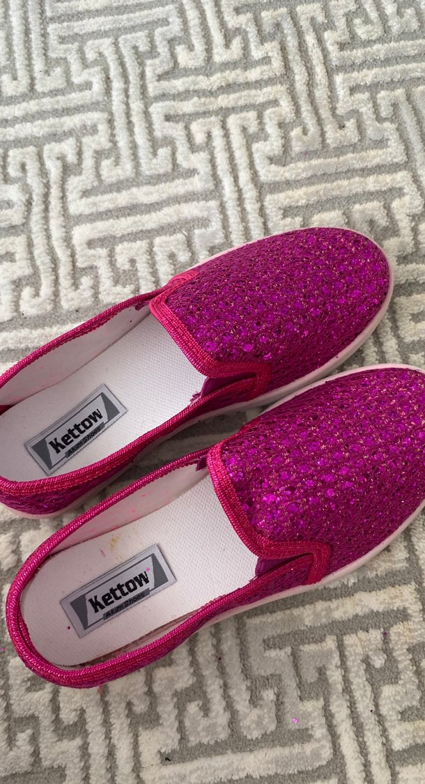 Kettow markalı, simli pembe kız çocuk loafer ayakkabılar. Lastik tabanlı, renkli ve desen içermeyen günlük tarzda bir model. ✨