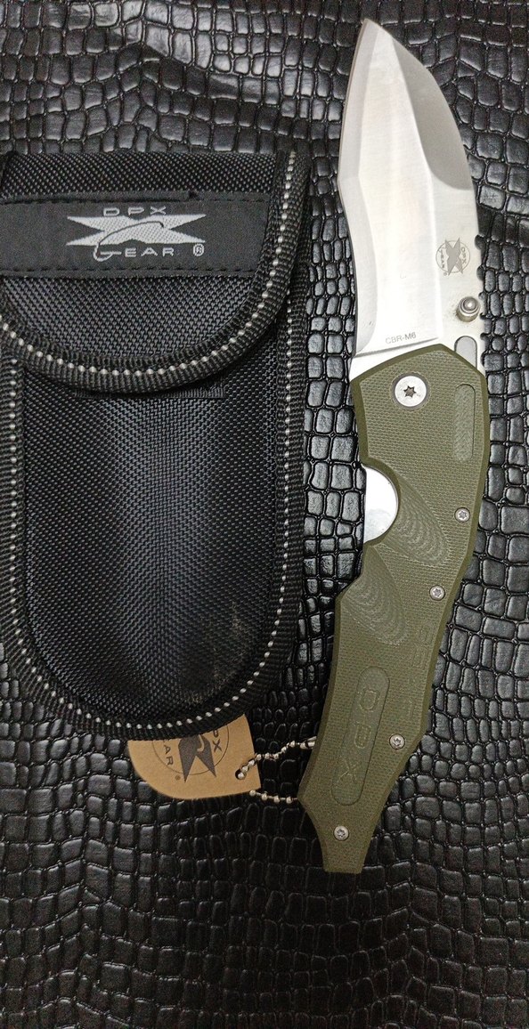 Khaki saplı katlanabilir bıçak, siyah taşıma kılıfı ile birlikte gelir. Keskin metalik bıçağı çeşitli kesim işleri için uygundur.