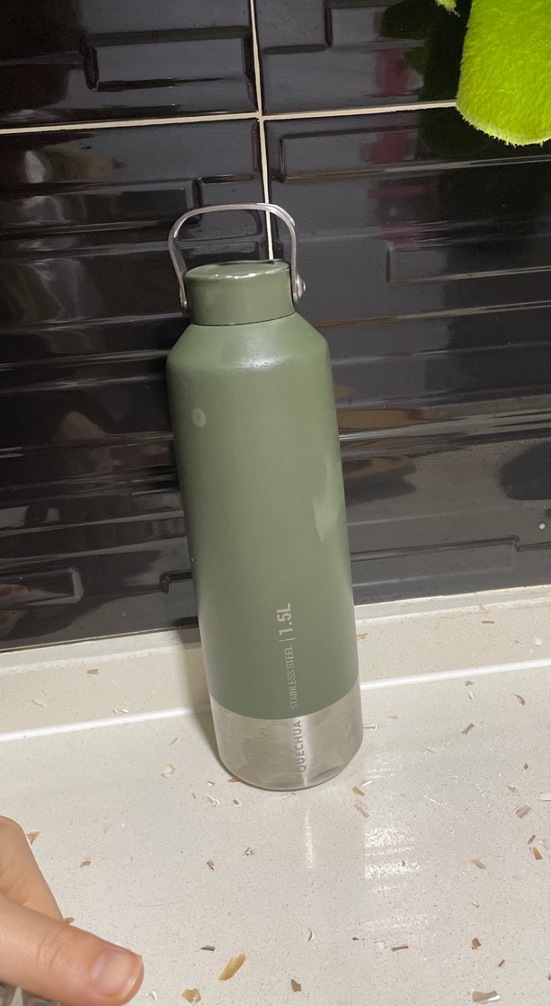 1.5 litrelik kapasiteye sahip, sağlam saplı khaki renk çocuk termosu. İçecekleri uzun süre sıcak veya soğuk tutar.
