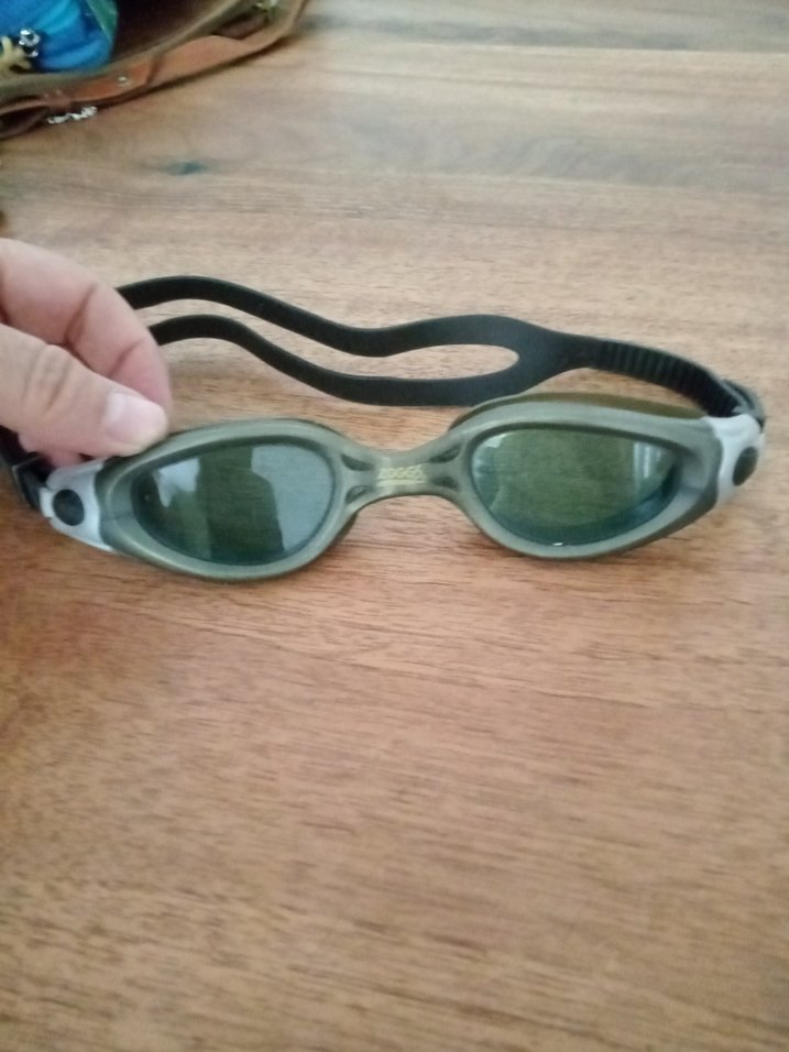 Khaki renkte, ayarlanabilir kayışlı ve oturan tasarımlı yüzücü gözlüğü. Minimalist, desensiz stil ve plaj kullanımı için uygun. ️