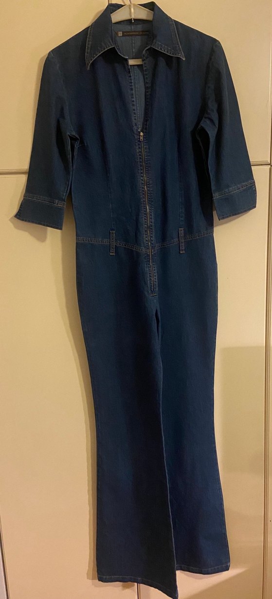 Kadınlar için lacivert denimden yapılmış, uzun kollu ve yakası kesimli tulum. Önden fermuarlı ve rahat kesimiyle günlük sokak stili için uygun. M beden 36-40 bedene uygundur.Gayet yeni durumdadır.