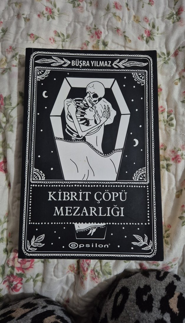 Fazla kusuru yoktur ama görüldüğü üzere sararmalar mevcuttur. Büşra Yılmaz'ın Kibrit Çöpü Mezarlığı kitabı, iskelet figürlü siyah beyaz kapak tasarımıyla dikkat çekiyor.