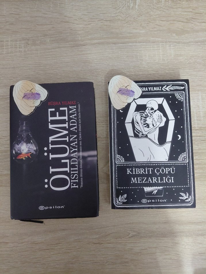 Büşra Yılmaz Kibrit Çöpü Mezarlığı ve Ölüme Fısıldayan Adam Ölüme fısıldayan adam kitabı ciltlidir ikisinin de ayracı mevcuttur