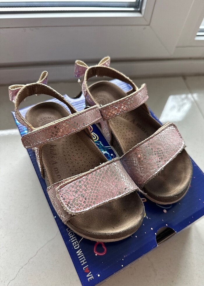 Kids a more birkenstock gibi mantar taban sandalet. Sorunu yok. Mantar taban olduğu için çok rahattır. Cırtlı olduğu için de ayarı kolaydır. #birkenstock