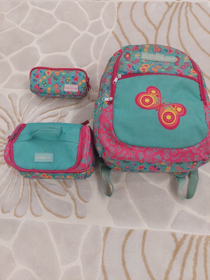 Kids Love Kız Çocuğu Kelebek desenli, renkli çocuk okul çantası, beslenme çantası ve kalemlikten oluşan set. Kids Love Kiz cocugu için 3lü set olarak gonderilecektir Okul Çantası4 gözlü Beslenme Çantası 2 gozlü Kalemkutusu 2 gözlü kullanım kaynaklı yıpranma vardır ancak yırtık yoktur zaten isteseniz de yirtamazsınız çok sağlam kullanışlı kaliteli kumaştan üretilmiş Bu markanın kalitesi belli Kendimizin kullanmayacağı hiçbir ürünü asla satmıyorum Temizliği yapılmıştır Gönül rahatlığıyla kullanabilirsiniz Alıcısına şimdiden hayırlı olsun #lumberjack #nike #adidas #uspolo #skechers #puma #kidslove #kidslove kidslove #okulcantasi