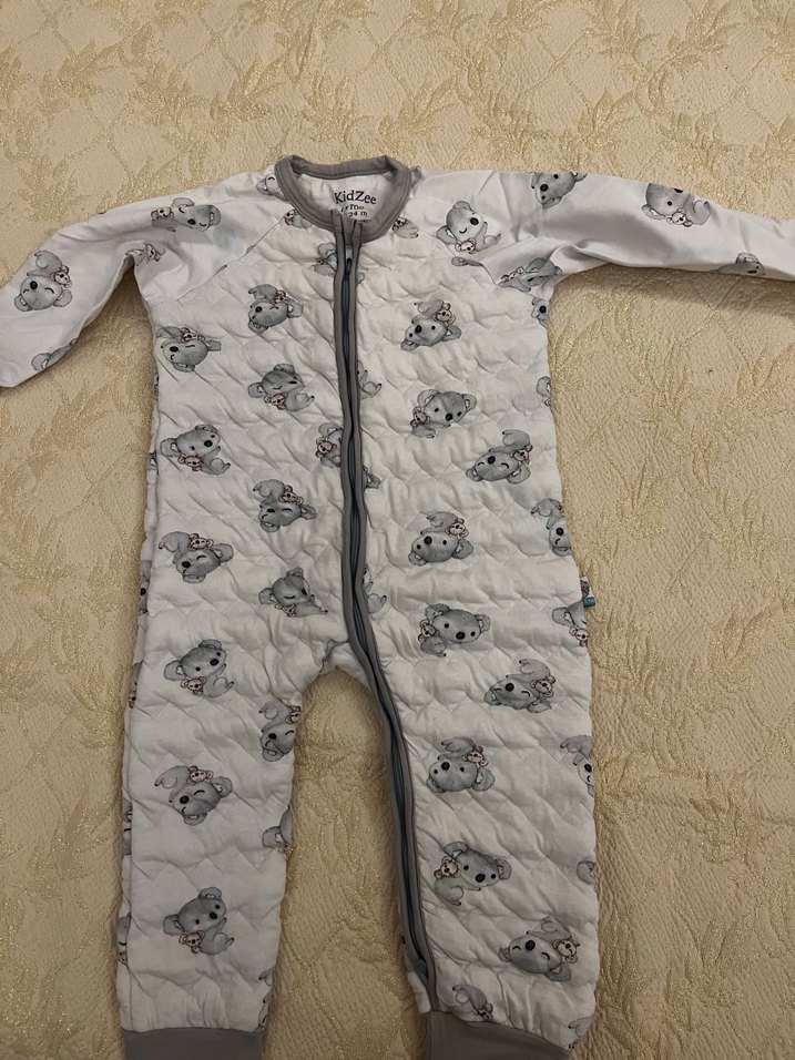 Çocuklar için yumuşak ve sıcak kumaştan yapılmış, gri zemin üzerinde sevimli hayvan desenleri bulunan uyku tulumu. Önde kolay açılıp kapanan fermuar vardır. Sorunu yoktur küçük geldiği için koydum