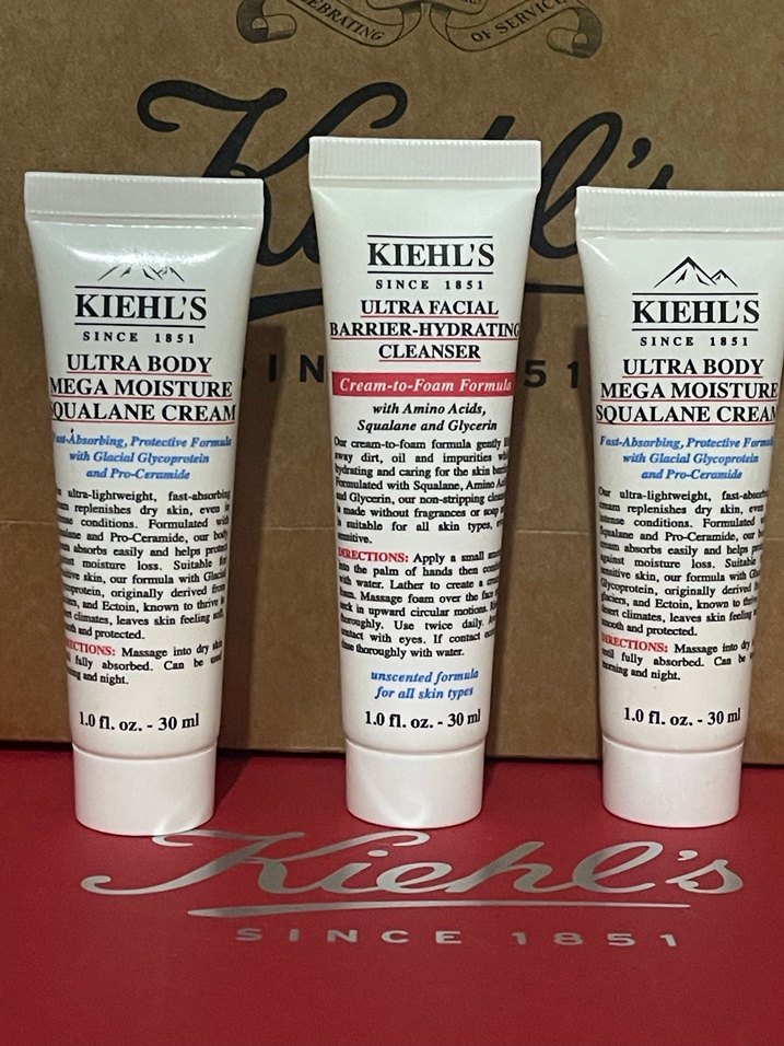 Kiehl's kadın cilt bakım seti; kremden köpüğe temizleyici ve 2 adet Ultra Body Mega Moisture Squalane krem içerir. Amino asit ve gliserinle cildi nemlendirir ve korur.