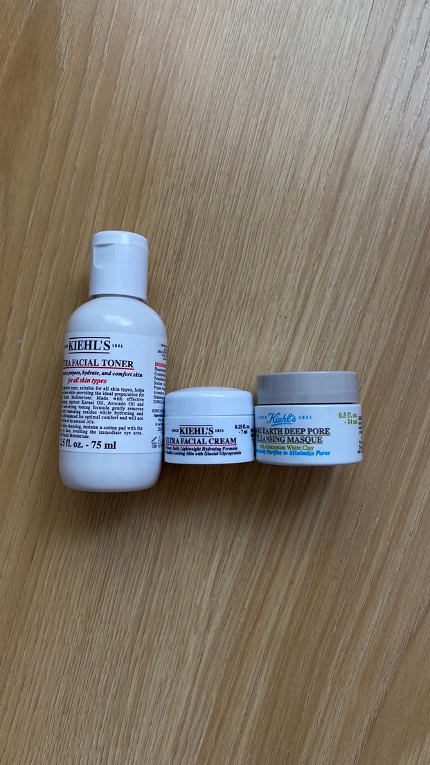 Kiehl's kadın cilt bakım seti, yüz toniği, yüz kremi ve derinlemesine gözenek temizleme maskesinden oluşur.