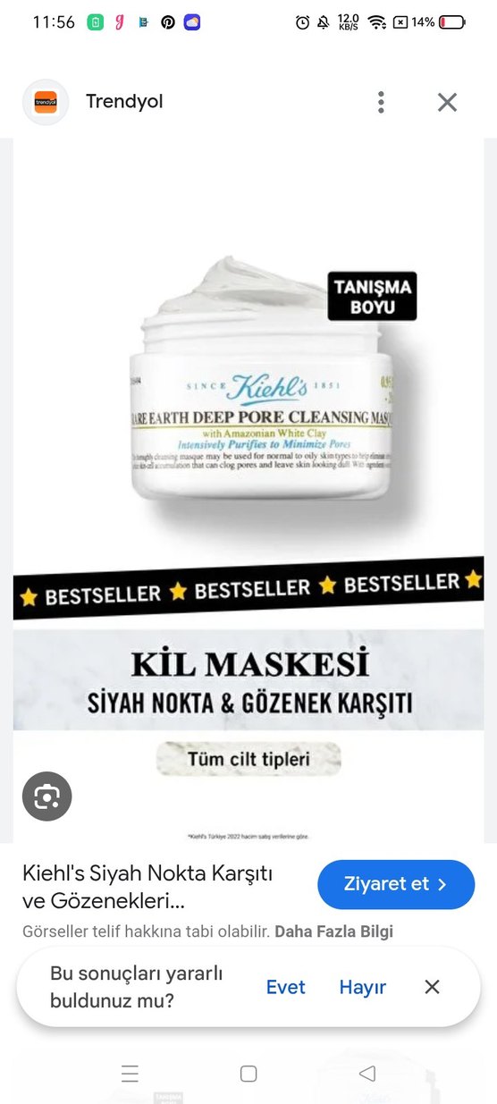 Kiehl's Amazon beyaz kil içeren kil maskesi, siyah noktaları ve gözenekleri derinlemesine temizler. Tüm cilt tiplerine uygundur.