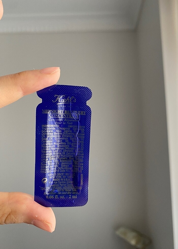 Kiehl’s Midnight Recovery Concentrate – tester 2 ml orijinal tester mini boy, hiç açılmadı. gece serumu olarak cildi dinlendirip rahatlatıyor, lavanta kokusu güzel ve hafif yağlı his vermeden kullanılıyor. Büyük boyunu kullanıyorum denemek isteyen birine gitmesi daha iyi olur. yurt dışında benzer tester’lar 7–9 usd civarında. İstanbul için elden teslim edebilirim