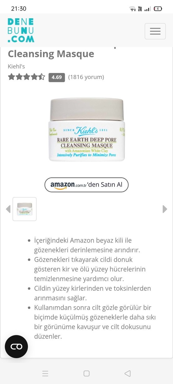 Amazon beyaz kili içeren bu nemlendirici, gözenekleri derinlemesine arındırır, ölü hücreleri ve toksinleri temizler, cildi gözle görülür şekilde temizler.