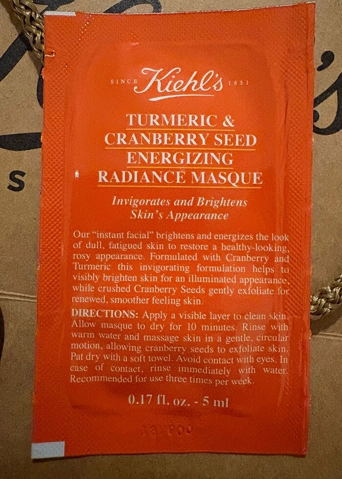 Kiehls Aydınlatıcı Zerdeçal Maske Turmeric Cranberry seed 5 ml… elimde 7 adet var istenirse