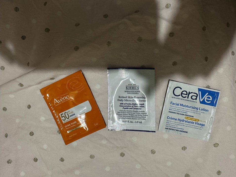 Kiehls retinol serum 1.5 ml, cerave ve avene güneş kremi. #kiehls #avene #cerave