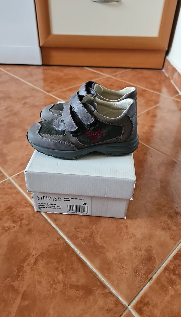 Kifidis marka, gri renklerde, baskılı desenli, cırt cırtlı erkek çocuk ayakkabısı. Dayanıklı kauçuk tabanlı. çocuğumun ayağı çabuk büyüdüğü için ayakkabı sayılı giyildi.