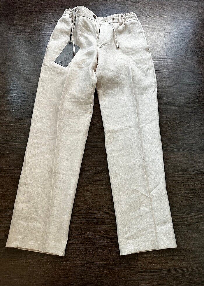 Sıfır ürün, etiketli, kullanılmamıştır. 46 beden 0 keten, 65-70 kilo arası olur.