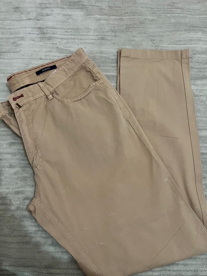Bej renk, regular fit, ve normal boy pantolon. Pürüzsüz sentetik kumaştan, gündelik sokak tarzı için uygundur.