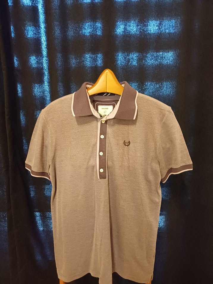 Bej renkli, düğmeli kısa kollu erkek polo tişört. Yumuşak süet kumaştan, rahat kesim ve günlük kullanıma uygun.