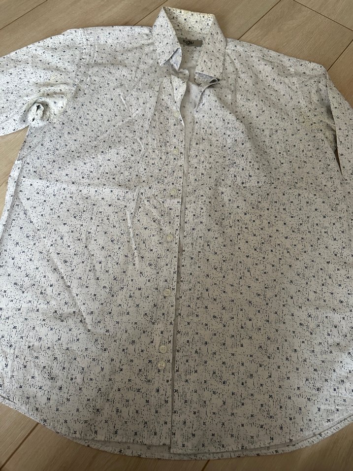 Uzun kollu, düğmeli ve yakalı erkek gömleği. Pamuklu kumaştan, yakasında ve koltuk ve koltuk altında sararma mevcuttur.Sokak stiline uygun. Uzunluğu 75 iki koltuk arası 55 cm