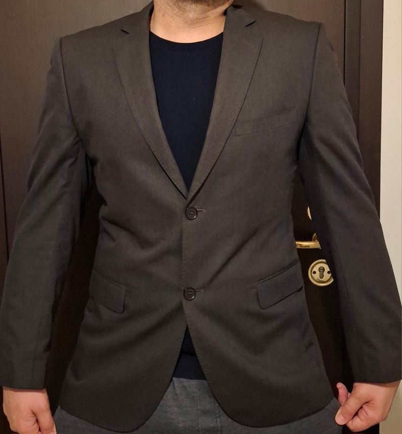 Gri renkte, düğmeli ve klasik yakalı erkek ceket. Normal kesim ve uzun kolludur, ofis ve günlük kullanıma uygundur.#altınyıldız#karaca