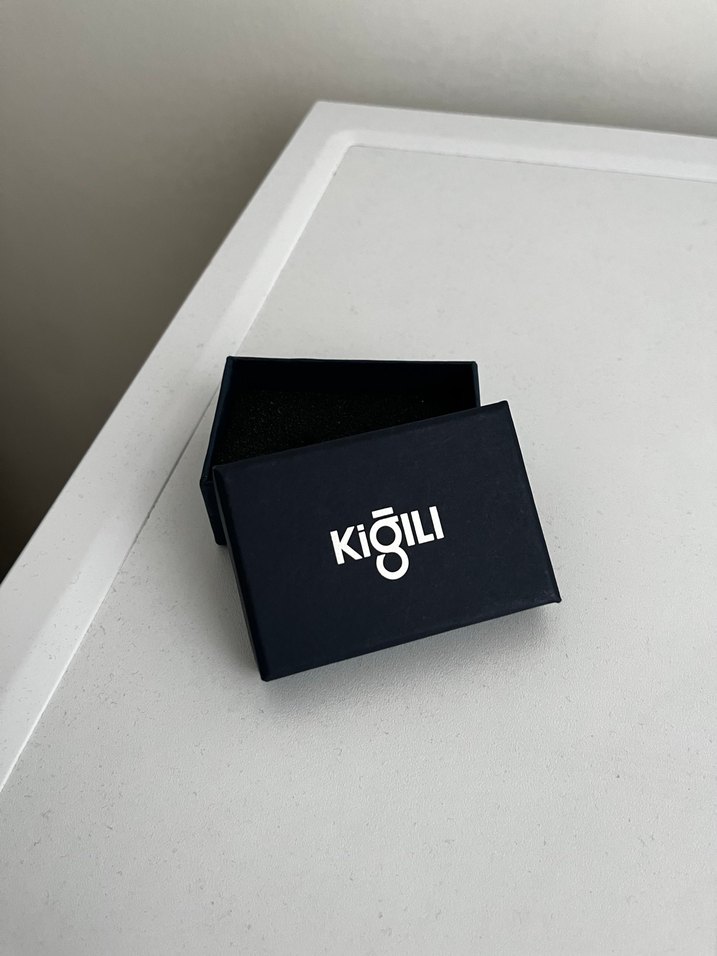 Kigill'in lacivert erkek kol düğmesi kutusu, baskılı logo ve elastik detaylarla minimalist ve şıklık sunar.