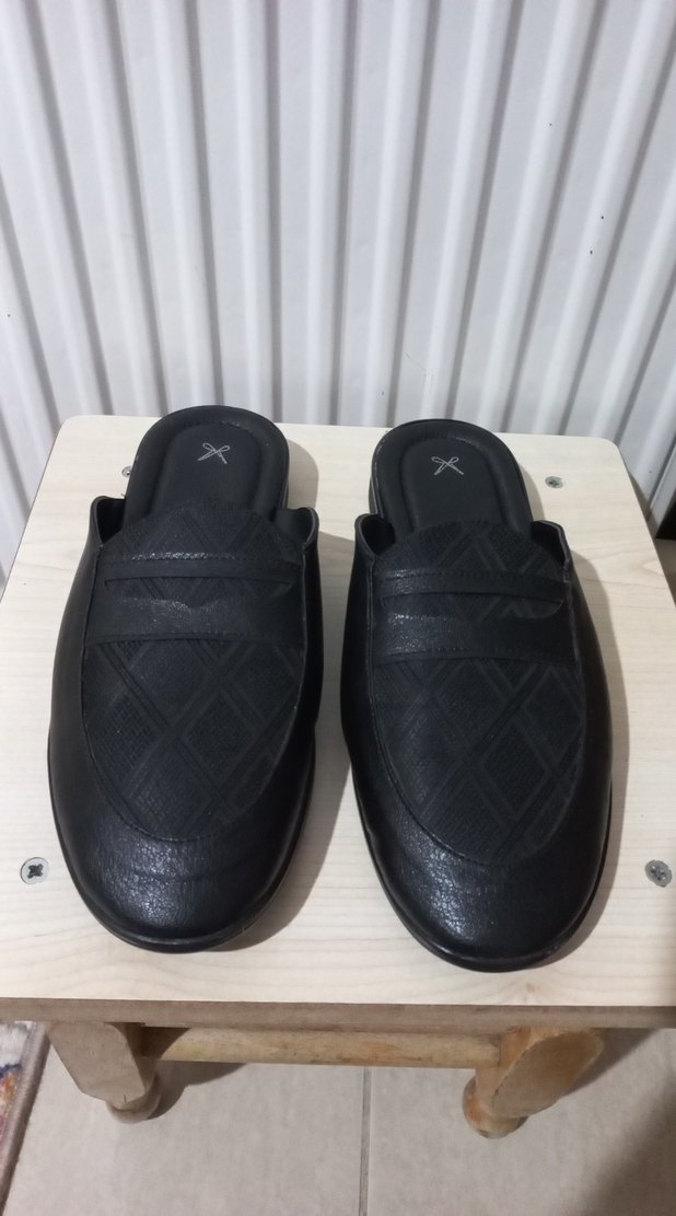 Erkekler için koyu siyah renkte, desenli yüzeye sahip minimalist tarzda ev terliği. Rahat kullanım için uygundur. sıfır üründür