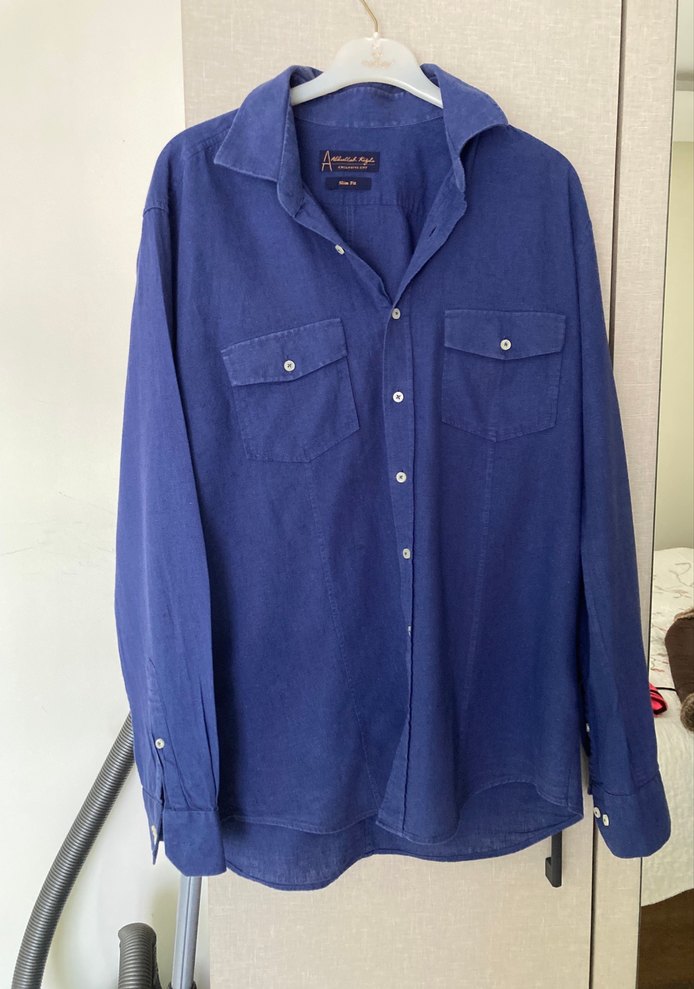 Kiğılı marka Mavi renk Düğmeli slim fit Erkek Keten Gömlek