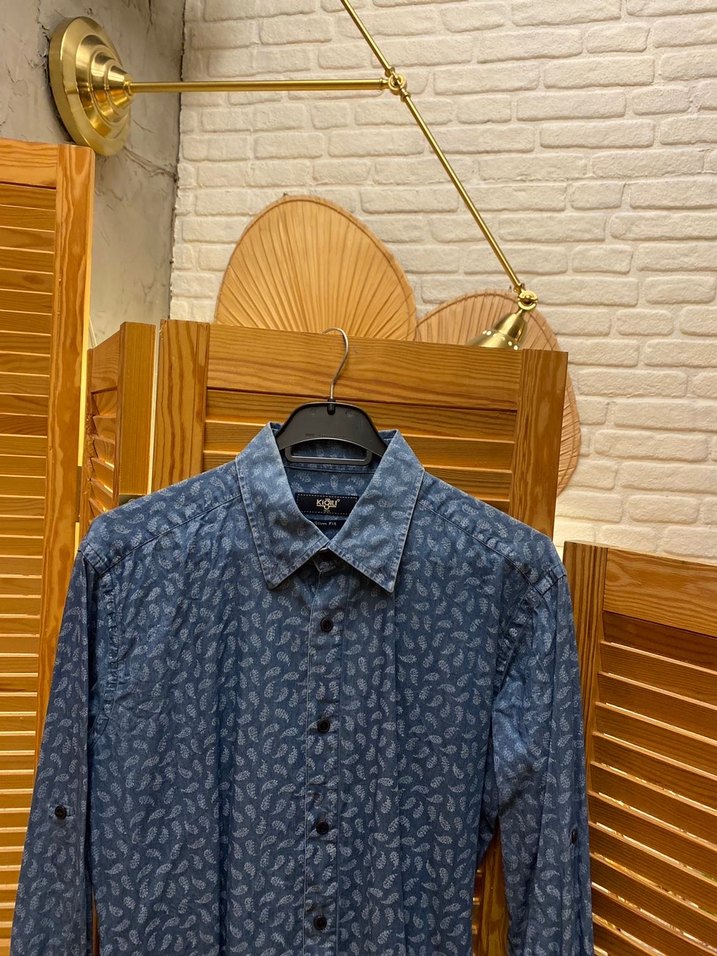 Bu erkek gömleği uzun kollu, yakalı ve düğmeli ön tasarıma sahiptir. Denim kumaştan yapılmış ve batik desenlidir. Normal uzunlukta ve regular fit kesimlidir, günlük sokak stiline uygundur. Mavi renktedir.