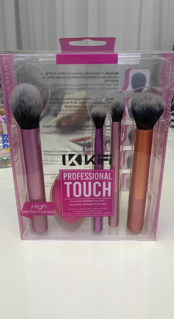 KIKI Profesyonel Touch makyaj fırça seti, hassas uygulama için dört adet açık pembe fırça içerir. Yüksek performanslı ve makyaj için gereklidir.