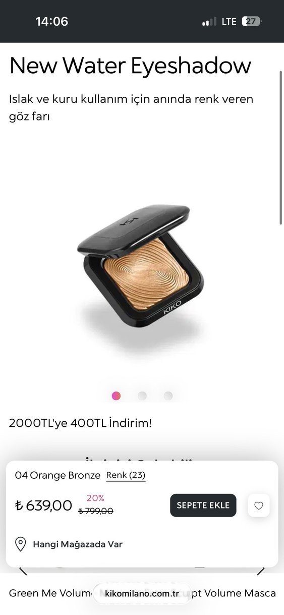 Kiko 04 Orange Bronze göz farı, parlak bej tonuyla canlı bir makyaj için yumuşak dokudadır.