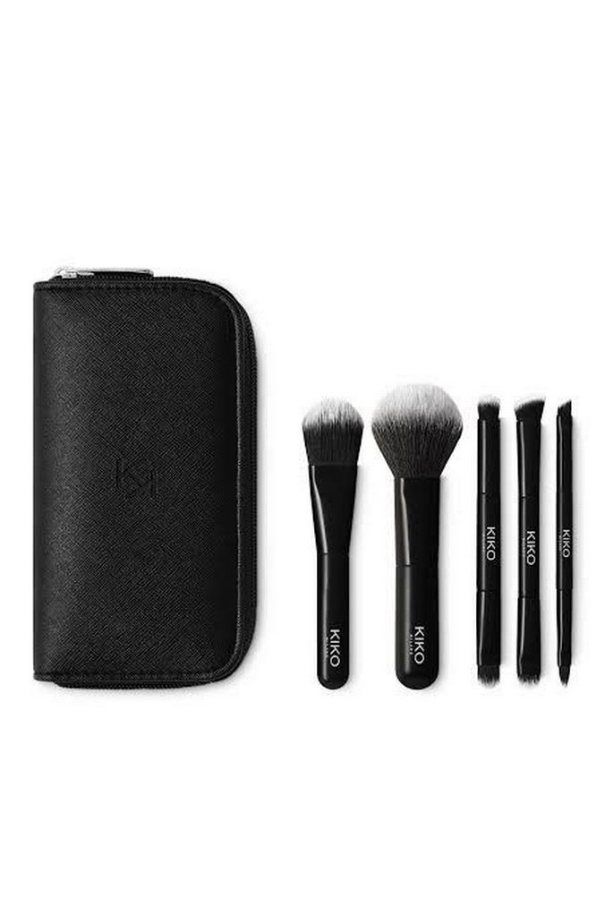 KIKO marka, yumuşak kıllı 5 siyah makyaj fırçası ve fermuarlı taşıma çantası içerir. ️
