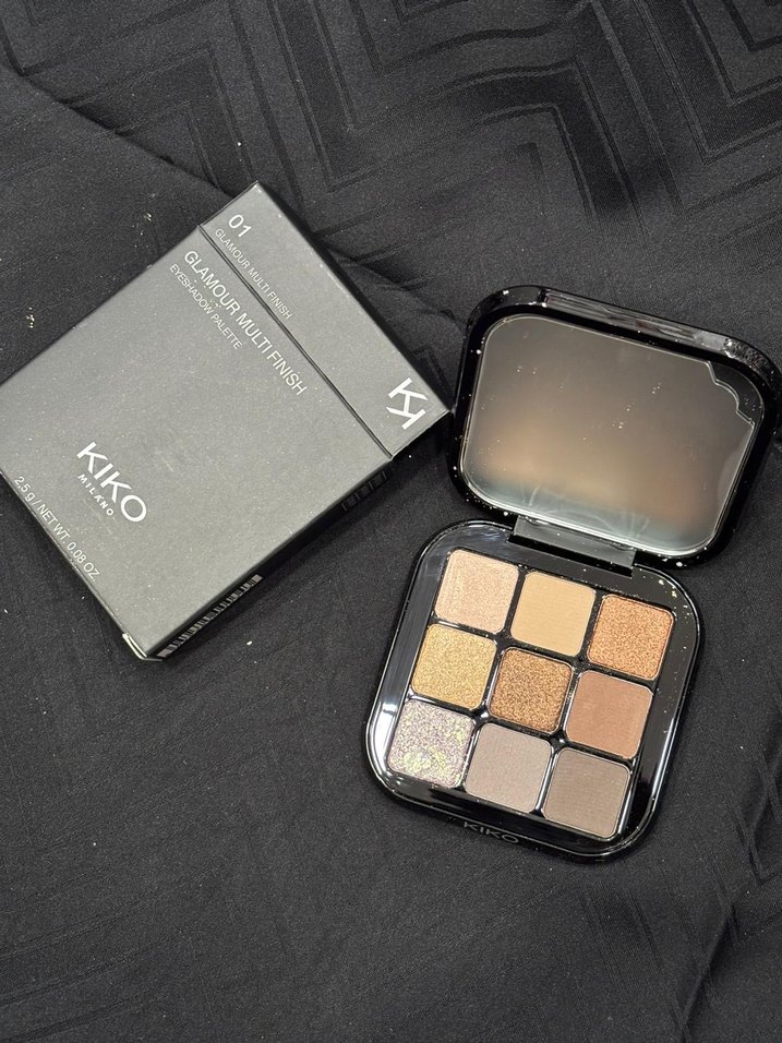 KIKO göz farı paleti, bej ve koyu tonlarda dokuz renk içerir, çeşitli bitişlerle farklı makyaj stilleri sunar. ✨
