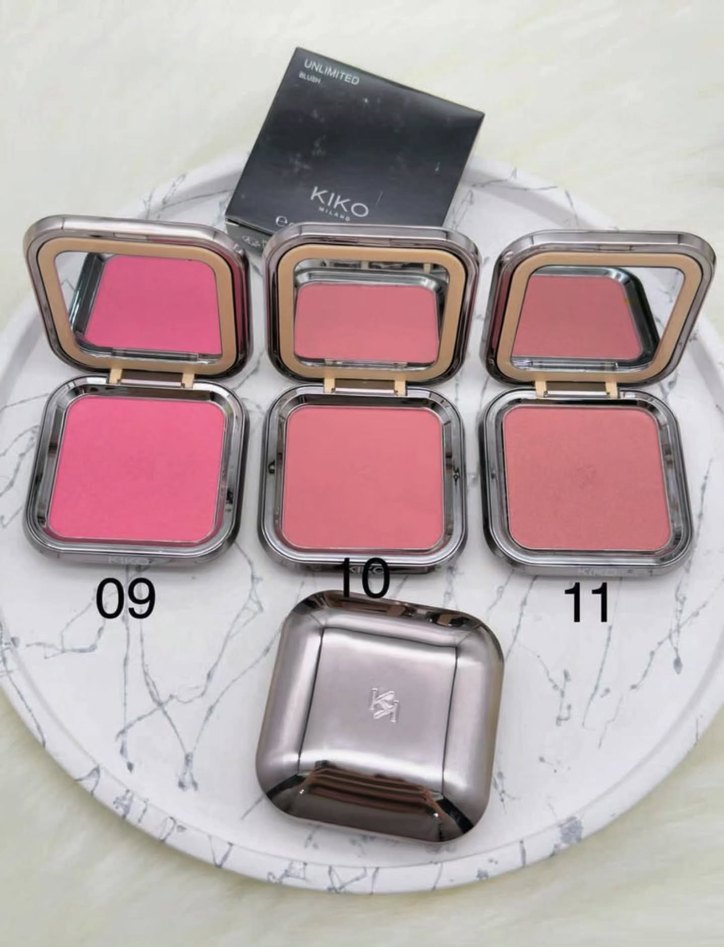 KIKO markasına ait 09 numaralı açık pembe allık, aynalı kompakt kutuda sunulmaktadır. Doğal bir görünüm sağlar.