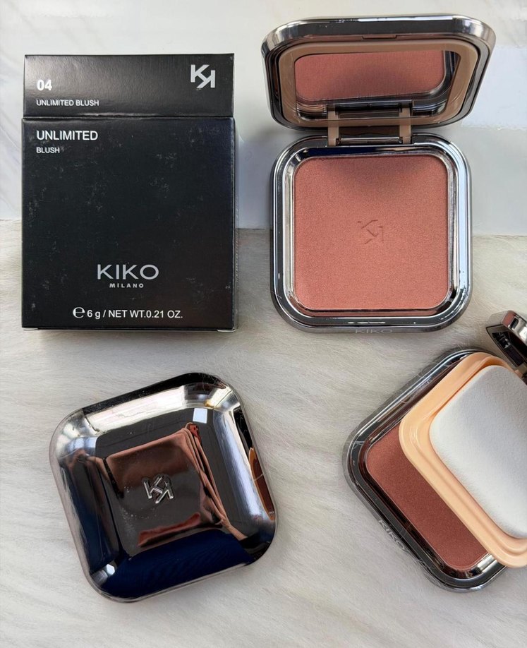 KIKO Unlimited Blush 04 numara koyu bej toz allık, pürüzsüz dokulu ve 6g ağırlığında. Şık ve parlak kompakt kutuda sunulur.