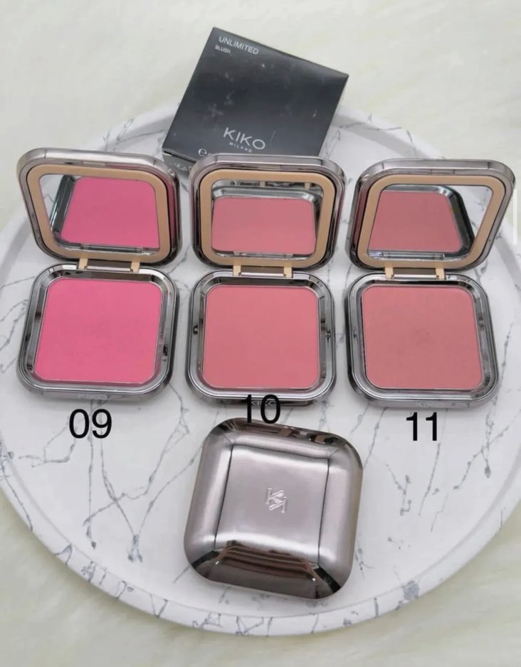KIKO markasına ait allık çeşitleri açık pembe renkte kompakt pudra, içinde ayna barındırır. Cilde yumuşak bir allık etkisi sağlar.