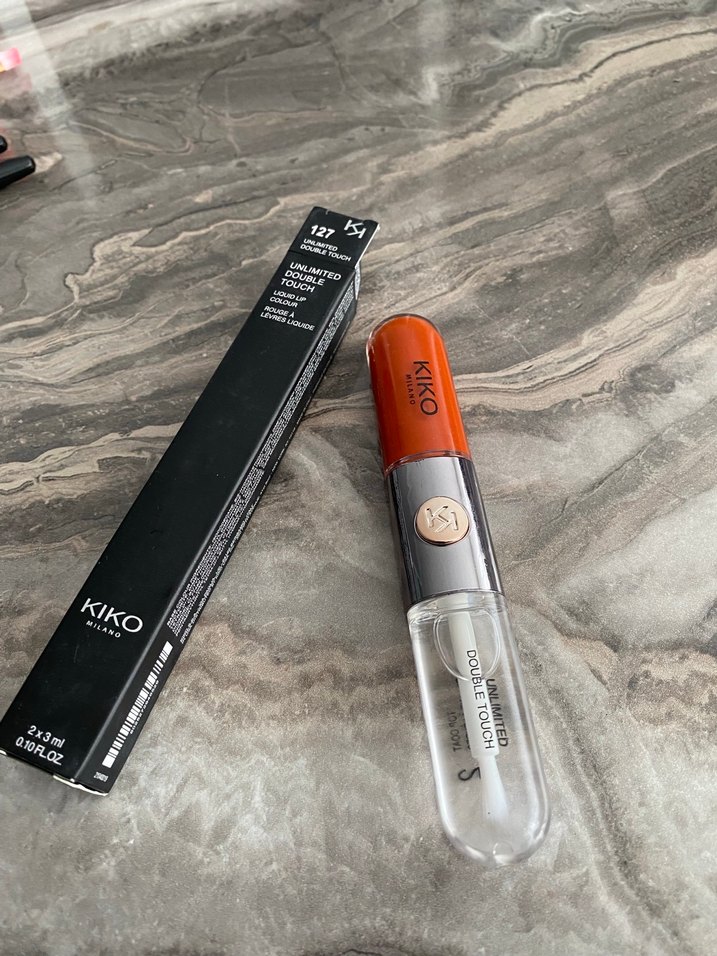 KIKO markasına ait çift taraflı ruj, turuncu renk seçenekleriyle farklı makyajlar yapmanızı sağlar.